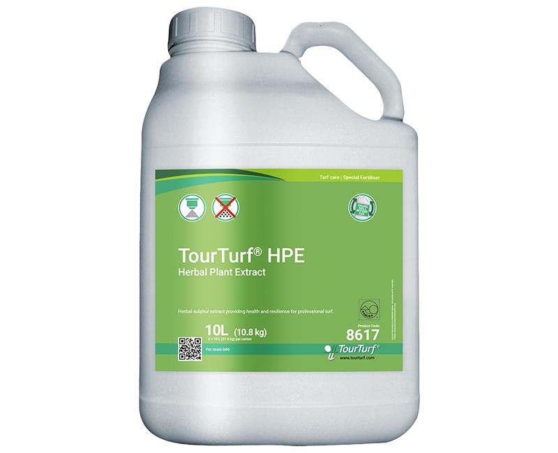 TourTurf® HPE Herbal Plant Extract is an organic liquid sulphur fertiliser. Due to its high contents of sulphur and amino acids, it can help to reduce abiotic stress and increase resiliency. TourTurf® HPE Herbal Plant Extract supports the natural ability of plants to regenerate, alleviates any sulphur deficiencies and promotes physiological processes during plant stress. It strengthens, feeds and revitalises turf.