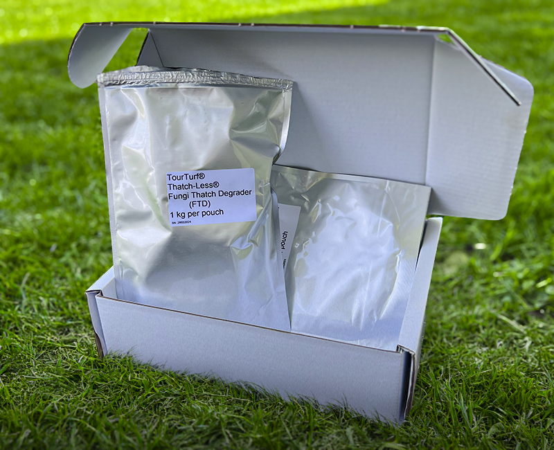TourTurf® Thatch-Less® FTD Fungi Thatch Degrader is a fully water-soluble powder with highly concentrated strains of Trichoderma fungi, biostimulants and other beneficial microorganisms to provide biological thatch control in sports turf. Thatch control is the key to healthy turf, uninterrupted infiltration of nutrients and water into the rootzone and firm, true, playable surfaces.