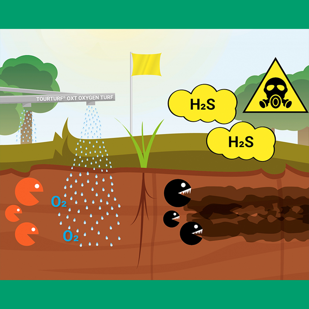 In combination with aerification, water management, improving drainage and optimisation of fertilisation TourTurf® Thatch-Less® OXT Oxygen Turf will supply the extra oxygen you need to overcome anaerobic conditions.