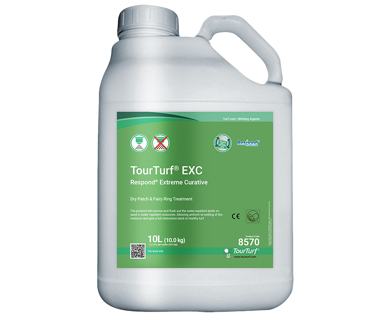 TourTurf® EXC Respond® Extreme Curative is a wetting agent which will help to solve water repellency problems caused by Dry Patch and Fairy Rings in sports turf. It works by breaking down hydrophobic coatings of sand and soil particles found in turfgrass root zones.