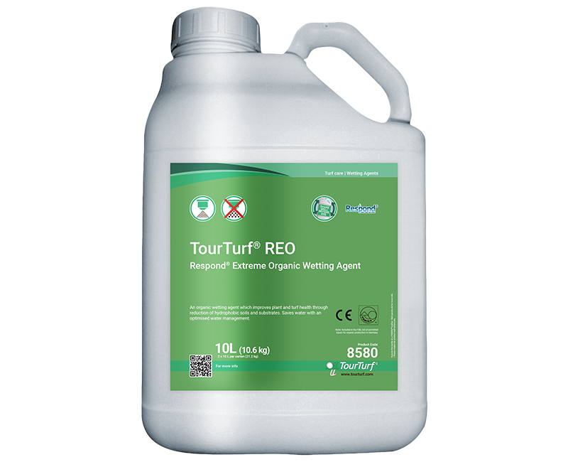 TourTurf® REO Respond® Extreme Organic Wetting Agent is the first 100% organic wetting agent from TourTurf®, approved for use in organic farming (FiBL listed). It provides a level of performance that is comparable to synthetic alternatives and superior water retention. TourTurf® REO has been verified as non-GM.
